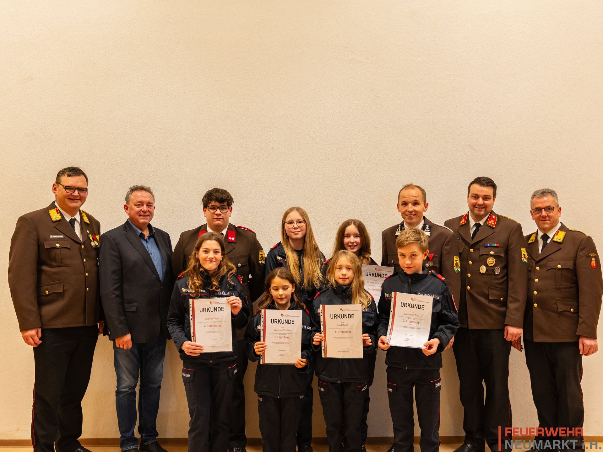 Die fünf Stufen der "Erprobungen" sind das "1x1 der Feuerwehrjugend" und somit der Grundstein für eine erfolgreiche Feuerwehrkarriere. Vier Jugendliche der Feuerwehr Neumarkt im Hausruckkreis traten vergangenen Samstag, dem 10. Jänner, nach wochenlanger Vorbereitung zu den Erprobungen der Feuerwehrjugend an. Unter der Leitung des Jugendbetreuers HBM d.F. Florian Parzer, konnten die Jungflorianis im Stationsbetrieb ihr Wissen in den verschiedensten Bereichen rund um das Feuerwehrwesen unter Beweis stellen. Kommandant HBI Sebastian Muska überreichte am Abend bei der Vollversammlung den Prüflingen die neu erworbenen Abzeichen und gratulierte zur erfolgreich abgelegten Prüfung. Wir wünschen auf diesem Weg allen Jugendmitgliedern viel Erfolg bei dem anstehenden Wissenstest in einigen Wochen. 1. Erprobung: Knoll Diona Wimmer Christina 2. Erprobung: Zweimüller Nico 4. Erprobung: Gföllner Tanja Wimmer Anna-Maria