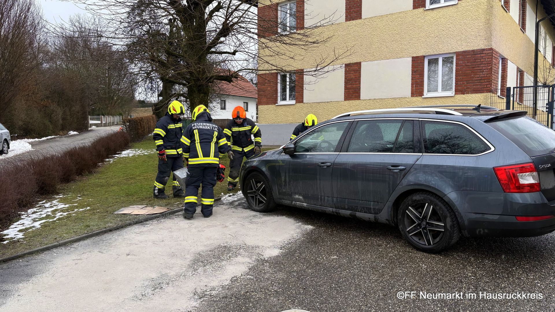 Die Freiwillige Feuerwehr Neumarkt im Hausruckkreis wurde gemeinsam mit der Polizei um 15:13 Uhr zu einem Ölaustritt auf einem Parkplatz alarmiert.
