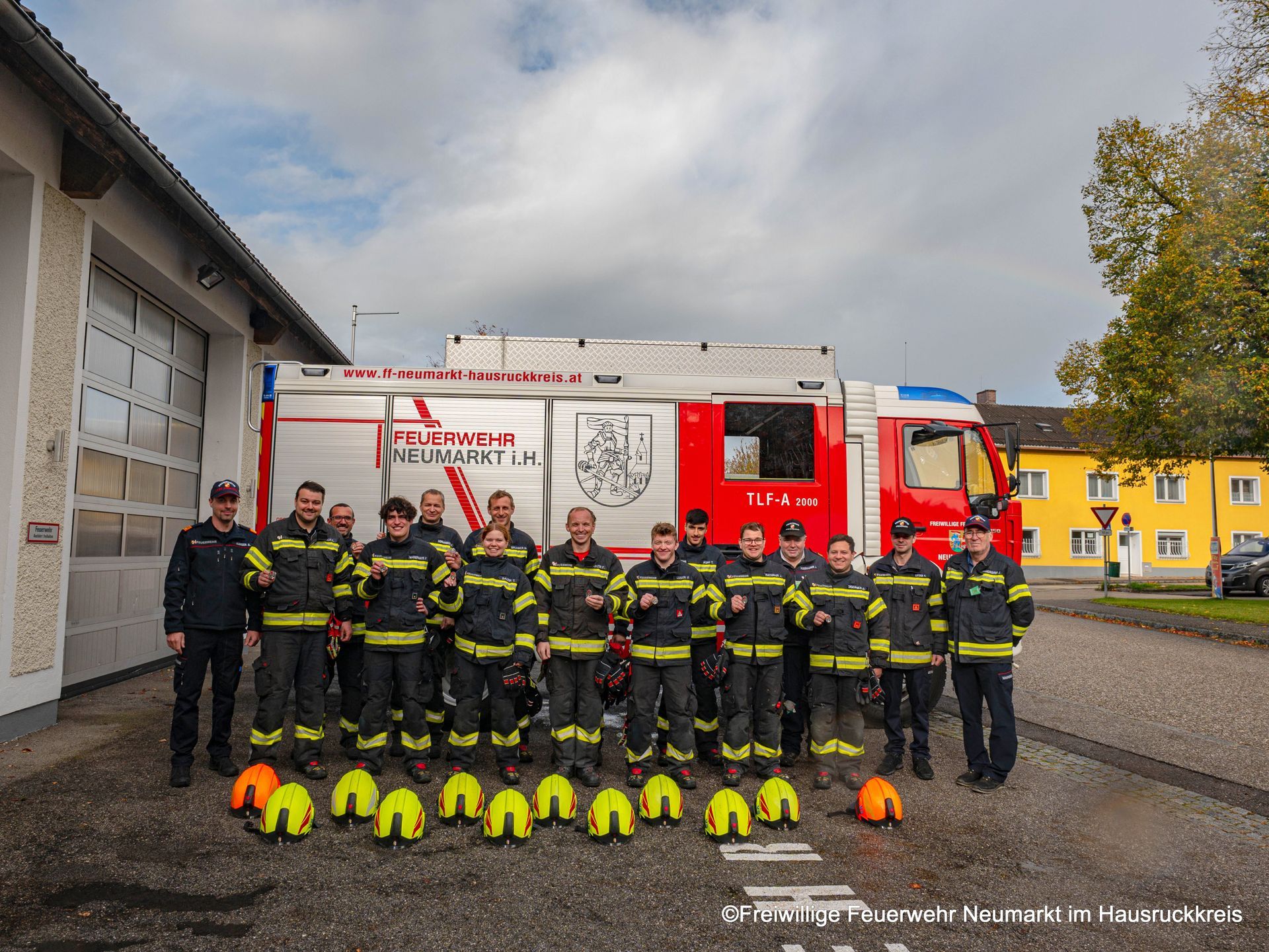 12 BDLP Abzeichen für die Freiwillige Feuerwehr Neumarkt im Hausruckkreis Nach neun Wochen Vorbereitungszeit und rund 300 Mannstunden traten am 25. Oktober 2025 fünf Kameradinnen und Kameraden zur Branddienstleistungsprüfung in Bronze und sieben zur Leistungsprüfung in Silber an. Die Leistungsprüfung Branddienst ist ein Mittel zur Vertiefung und Erhaltung der Kenntnisse der Tätigkeiten in der Löschgruppe bzw. Tanklöschgruppe, um ein geordnetes, sicheres und zielgerichtetes Zusammenarbeiten beim Löscheinsatz zu gewährleisten. Der Fokus liegt dabei auf Gerätekunde, Lageerkundung, Befehlsgebung sowie sicherem praktischen Arbeiten. Die Leistungsprüfung Branddienst unterstützt die Ausbildung der Feuerwehrmitglieder und ist deshalb ein wichtiger Ausbildungsschritt für einen reibungslosen Einsatzablauf. Das Branddienstabzeichen ist in einem festgelegten Zeitfenster zu absolvieren; Rekordzeiten sind dabei unerwünscht. Unter den strengen Augen von vier Bewertern, darunter Abschnittsfeuerwehrkommandant BR Karl Lindebauer und der Leiter der Leistungsprüfung Branddienst, HBI d.F. Josef Nussbaumer, konnte die Leistungsprüfung erfolgreich absolviert werden. Stellvertretend für Abschnittsfeuerwehrkommandant BR Johann Kronsteiner überreichte ABI Andreas Auinger feierlich den Kameradinnen und Kameraden der Neumarkter Feuerwehr die Abzeichen. Wir gratulieren unseren Kameradinnen und Kameraden recht herzlich zur bestandenen Leistungsprüfung!