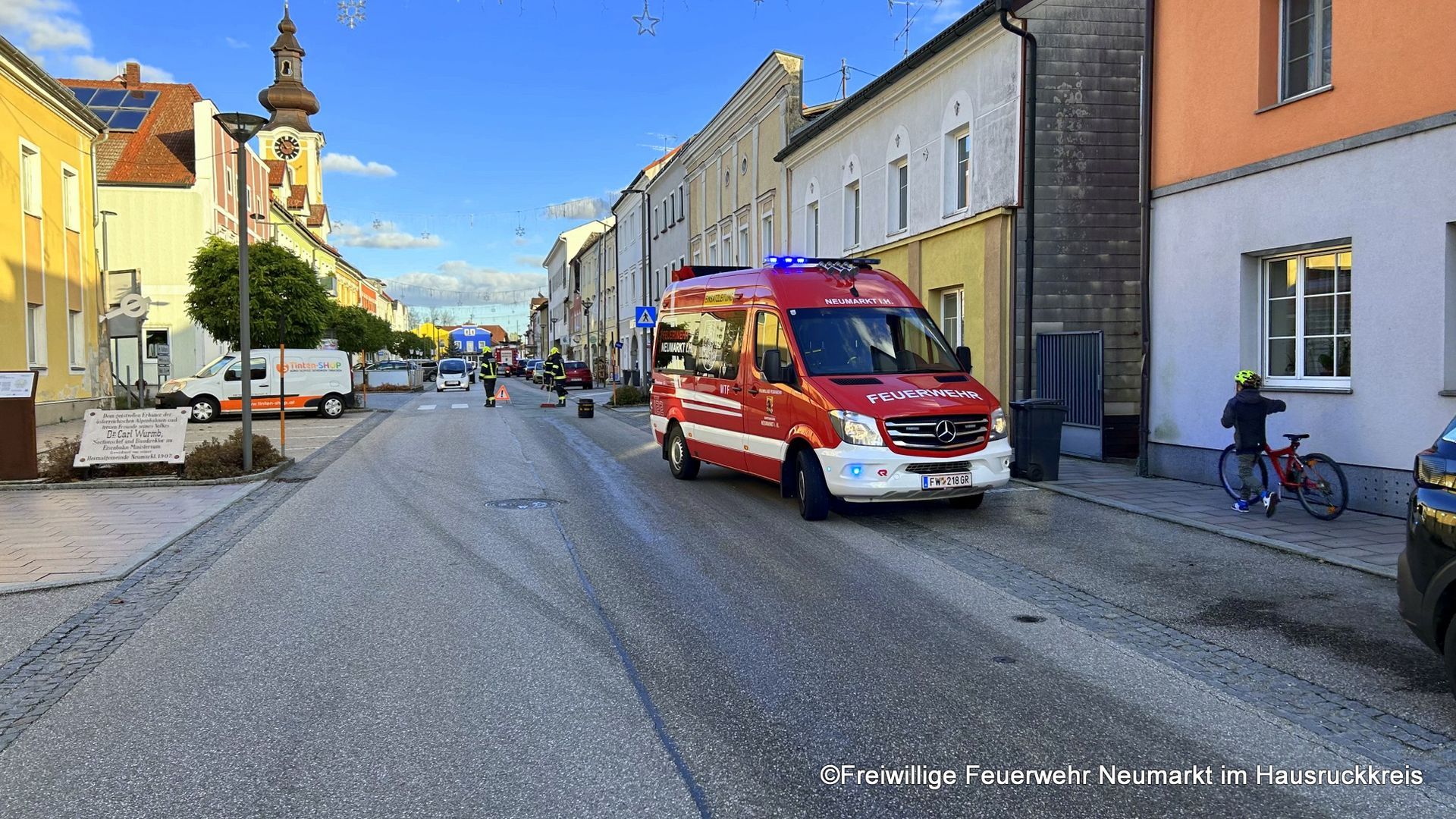Die Feuerwehr Neumarkt im Hausruckkreis wurde um 15:43 Uhr zu einem Wasserschaden am Marktplatz alarmiert. In einer Wohnung kam es in der Küche zu einem Leitungsbruch der Wasserzuleitung zum Waschbecken. Infolgedessen wurde die Küche überflutet. Die Feuerwehr entfernte das ausgetretene Wasser mittels Nasssauger und konnte den Schaden rasch eindämmen. Der Einsatz wurde um 16:19 Uhr beendet.
