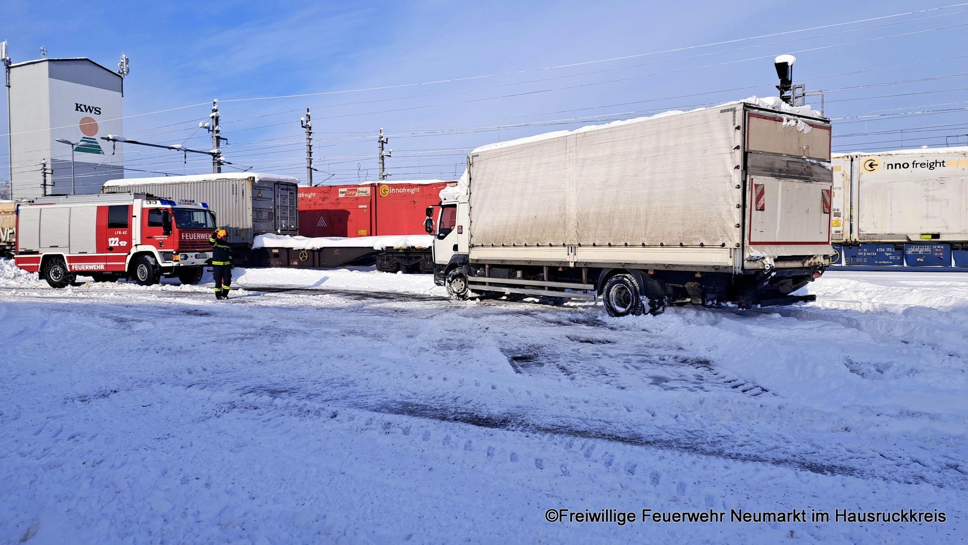 Die Freiwillige Feuerwehr Neumarkt im Hausruckkreis wurde um 12:03 Uhr zu einer Lkw-Bergung im Bereich einer Kreuzung zur B137 alarmiert. Ein Lkw mit Anhänger war aus bislang unbekannter Ursache in eine Böschung geraten und dort steckengeblieben. Seitens der Feuerwehr wurde die Einsatzstelle abgesichert und auf der B137 eine einseitige Verkehrsregelung eingerichtet, um ein sicheres Arbeiten im Gefahrenbereich zu gewährleisten. Die Bergung des Lkw erfolgte durch die Firma Möseneder, welche das Fahrzeug mithilfe eines Radladers aus seiner misslichen Lage befreien konnte. Der Lenker konnte den Anhänger wieder ordnungsgemäß anhängen und seine Fahrt fortsetzen. Der Einsatz konnte um 12:51 Uhr beendet werden.
