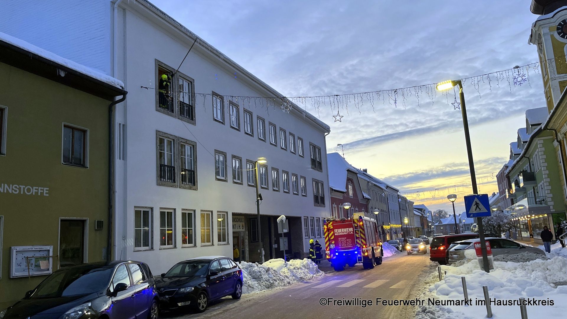 Die Feuerwehr Neumarkt im Hausruckkreis wurde um 15:43 Uhr zu einem Wasserschaden am Marktplatz alarmiert. In einer Wohnung kam es in der Küche zu einem Leitungsbruch der Wasserzuleitung zum Waschbecken. Infolgedessen wurde die Küche überflutet. Die Feuerwehr entfernte das ausgetretene Wasser mittels Nasssauger und konnte den Schaden rasch eindämmen. Der Einsatz wurde um 16:19 Uhr beendet.
