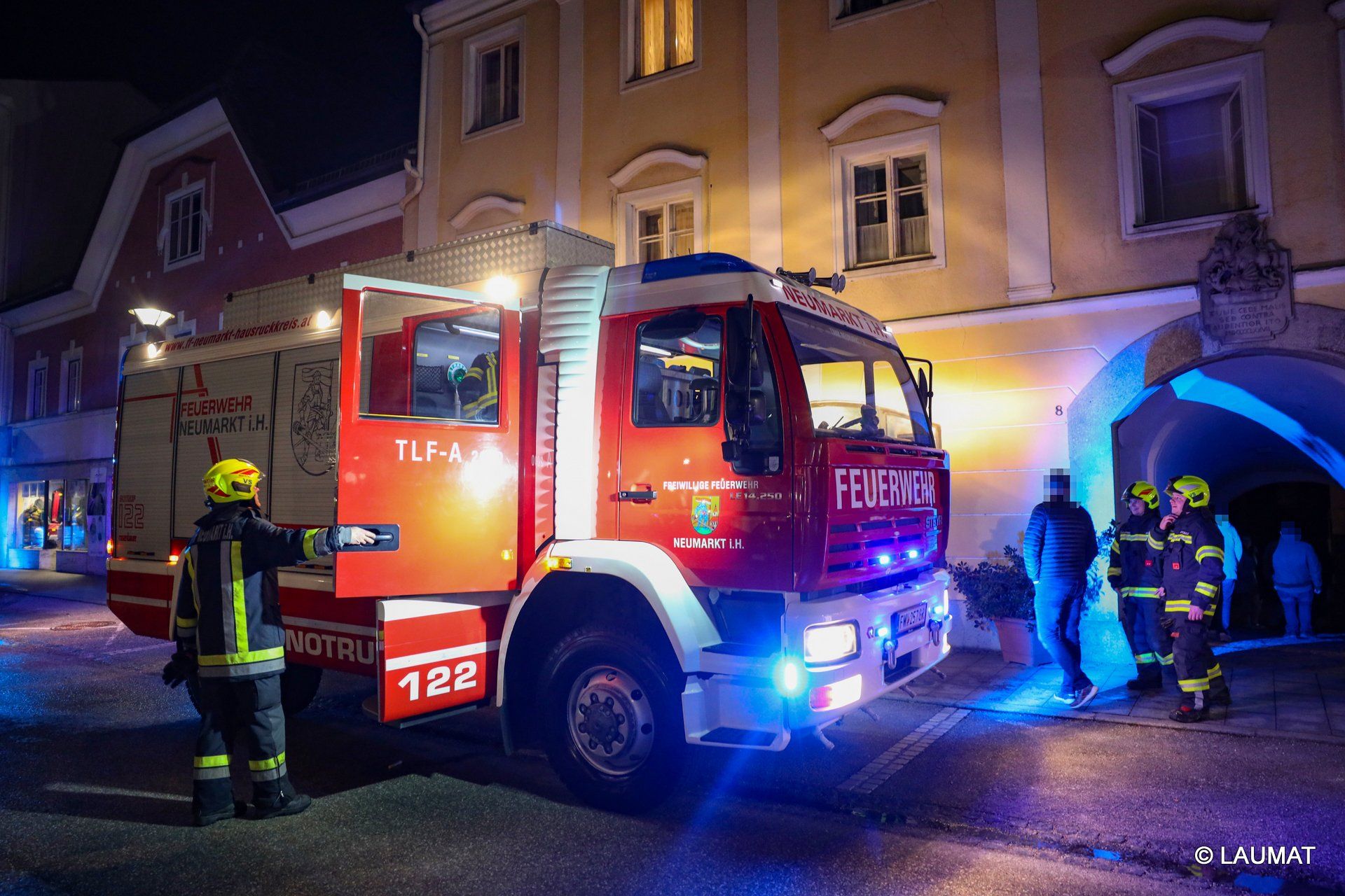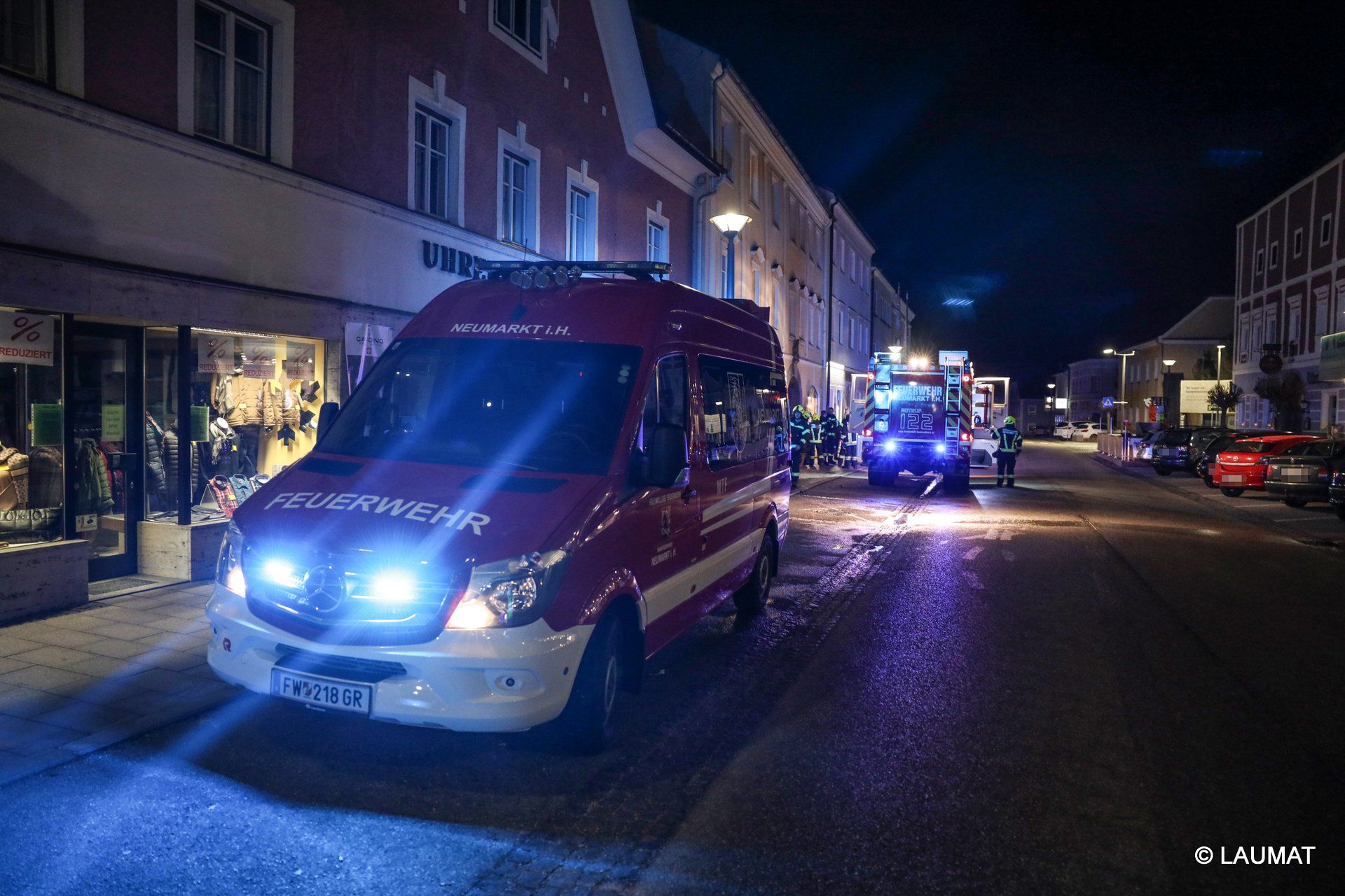 Die Freiwillige Feuerwehr Neumarkt im Hausruckkreis wurde um 21:01 Uhr zu einem Wohnhausbrand am Marktplatz alarmiert.