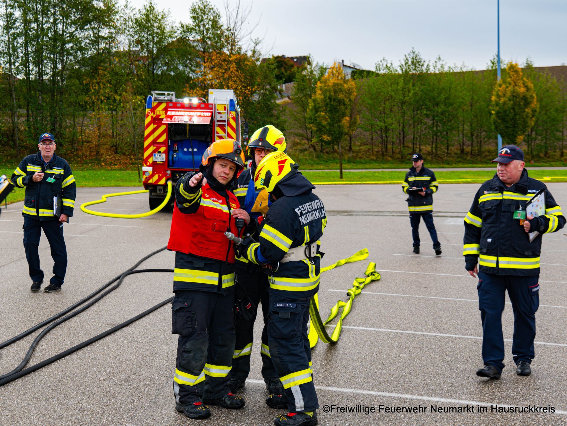 Unter den strengen Augen von vier Bewertern, darunter Abschnittsfeuerwehrkommandant BR Karl Lindebauer und der Leiter der Leistungsprüfung Branddienst, HBI d.F. Josef Nussbaumer, konnte die Leistungsprüfung erfolgreich absolviert werden.