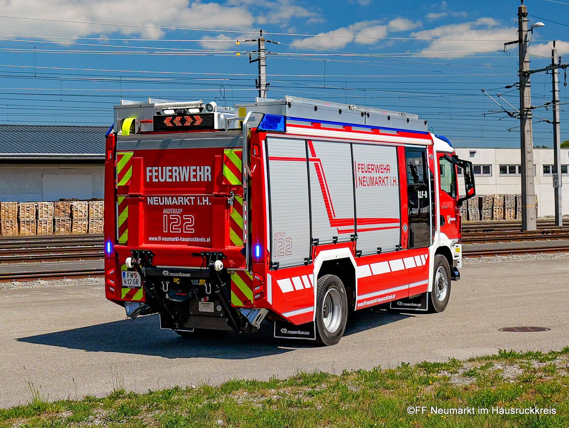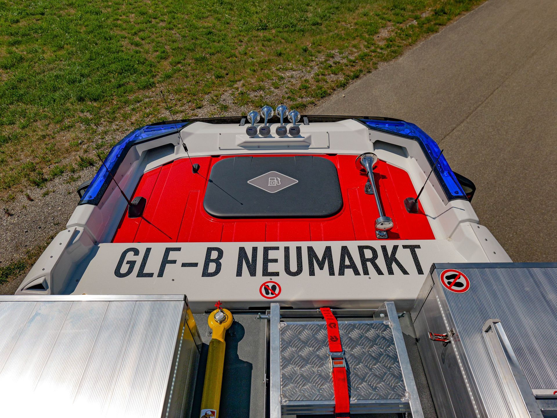 Am Fahrzeugheck befindet sich eine Ladebordwand, über die bis zu drei Rollcontainer aufgenommen werden können. In der Standardbeladung sind die Rollcontainer „Pumpe“, „Schlauch“ und „Gitter“ verlastet. Alternativ besteht die Möglichkeit, die beiden Rollcontainer des Vollschutzstützpunktes zu transportieren, um das Fahrzeug einsatzspezifisch anzupassen.