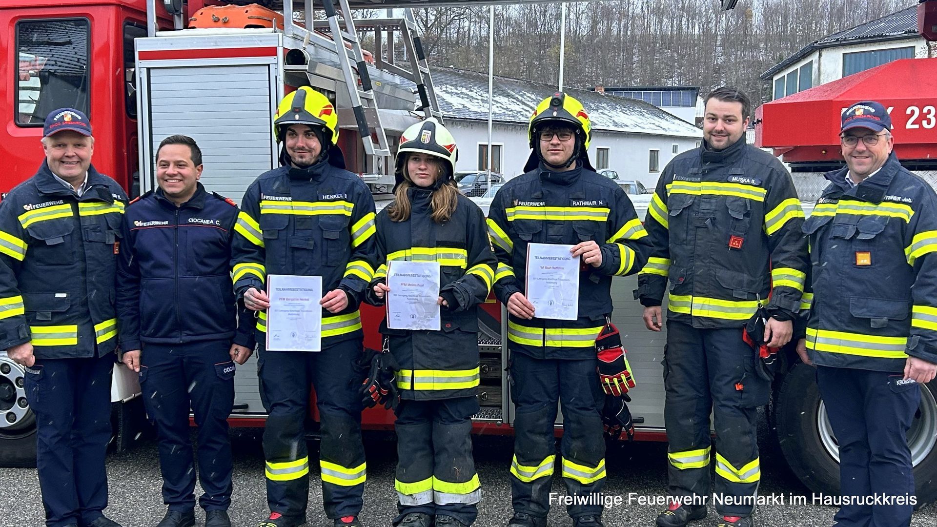 Rathmair Noah, Henkel Benjamin und Knoll Melina komplettieren seit heute die aktive Einsatzmannschaft der FF Neumarkt im Hausruckkreis. Die drei konnten am Freitag und Samstag die Ausbildung zum Truppmann (auch Grundlehrgang genannt) erfolgreich absolvieren. Diese selektive Prüfung war der letzte Abschnitt einer mehrmonatigen Grundausbildung in der eigenen Feuerwehr.