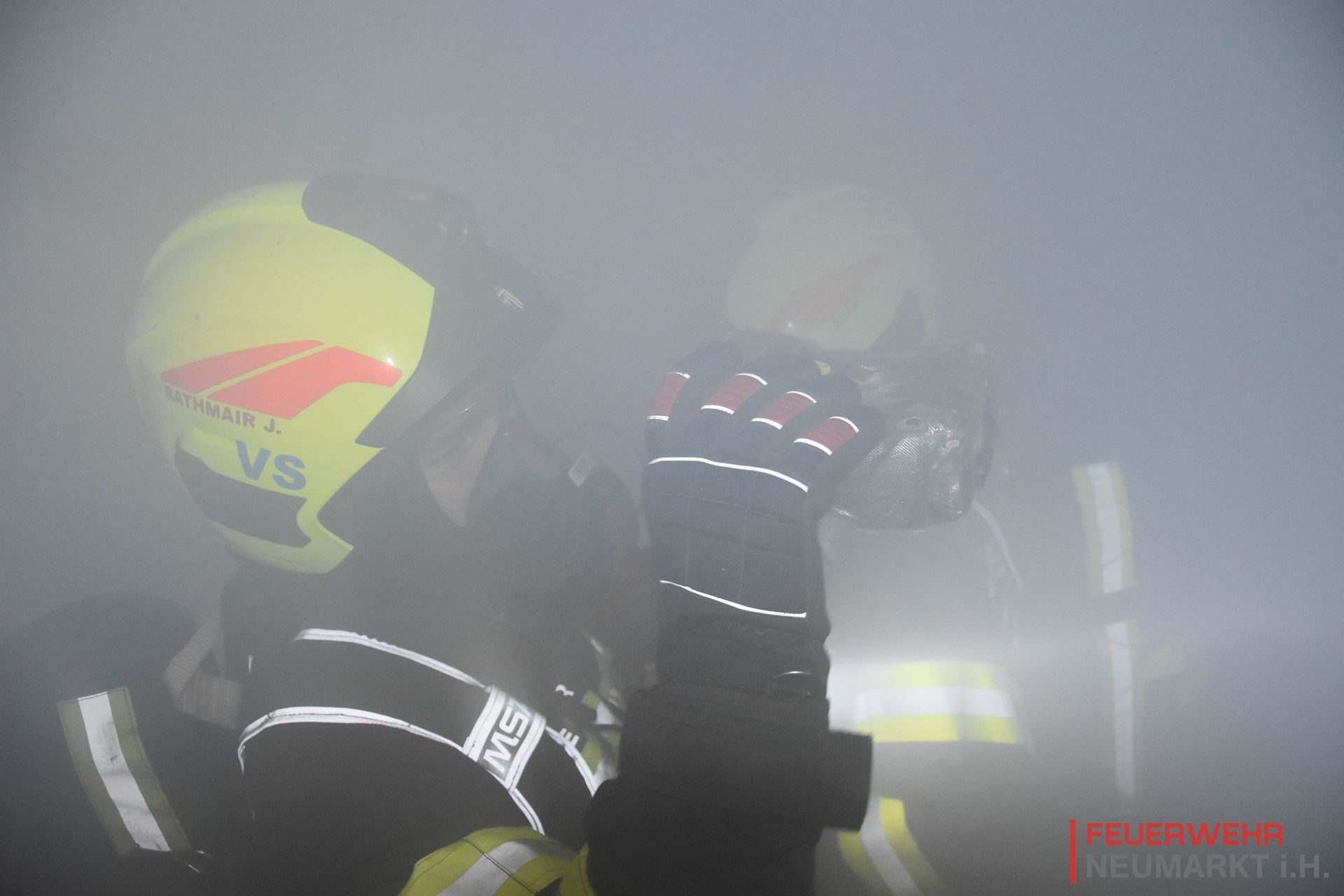 Bei der Gruppenübung am vergangenen Freitag wurde ein Werkstattbrand mit einer vermissten Person simuliert. Ein Atemschutztrupp übernahm die Personenrettung sowie die Brandbekämpfung. Zeitgleich wurde der Lüfter vorbereitet, in Betrieb genommen, und die Person konnte mithilfe einer Korbschleiftrage durch ein Fenster gerettet werden.