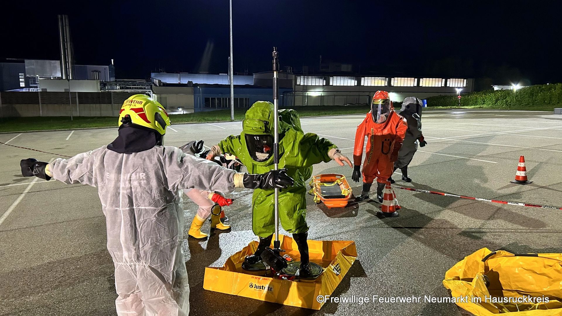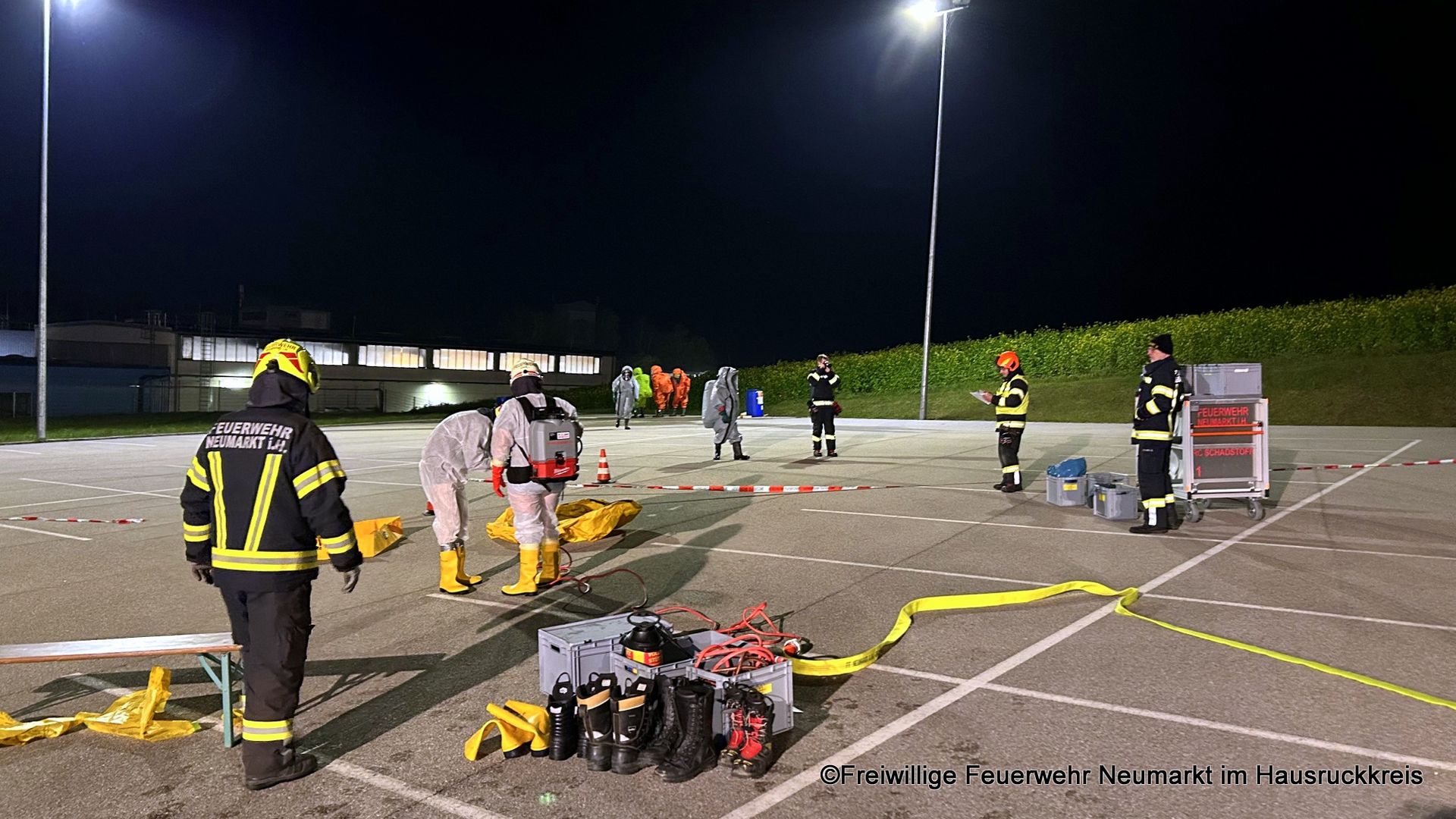 Der Gefahrenbereich wurde abgesperrt und die Kanäle abgedichtet sowie ein 3-facher Brandschutz errichtet. Bereits nach kurzer Zeit konnten detaillierte Informationen der ausgetretenen Gefahrstoffe an die Einsatzleitung übermittelt werden, woraufhin eine zielgerichtete Vorgehensweise erarbeitet wurde.